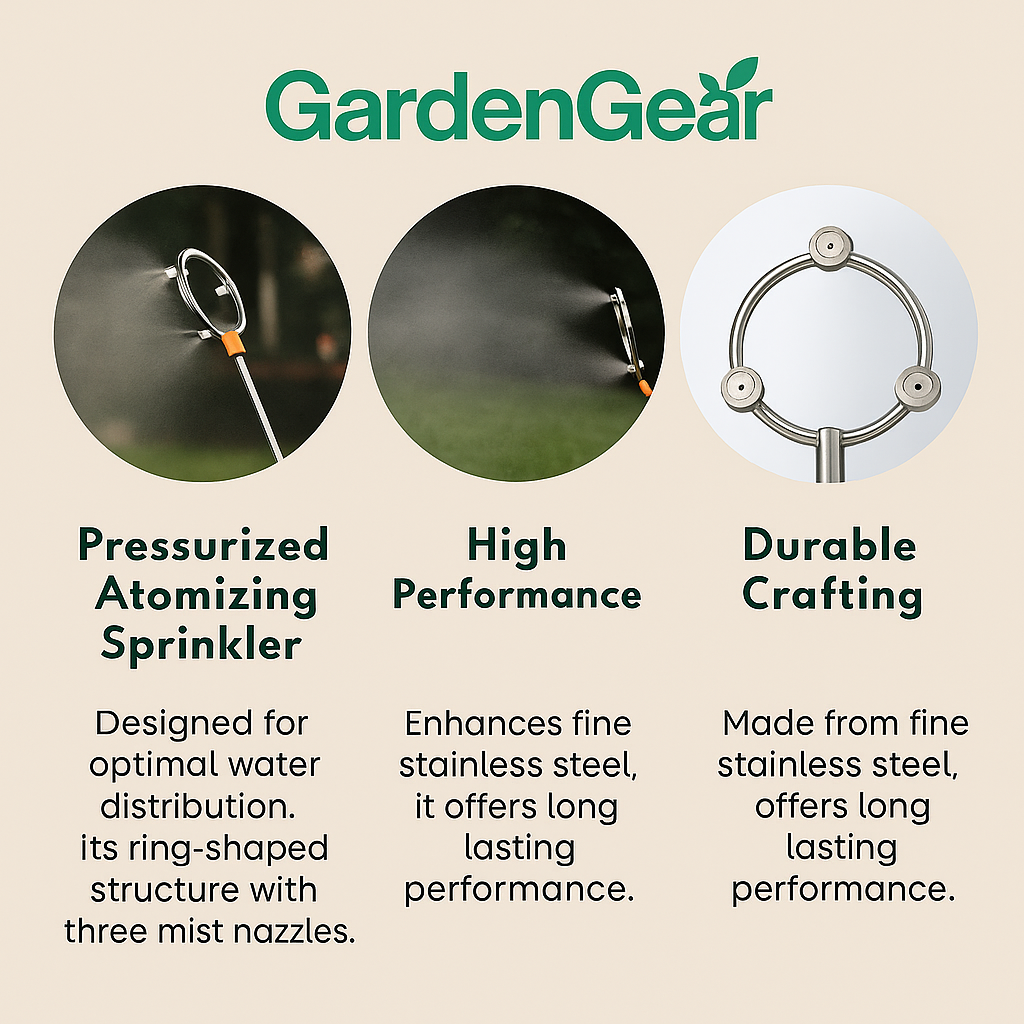 The ring-shaped design spreads water evenly in every direction, ensuring no dry patches and full-field hydration.